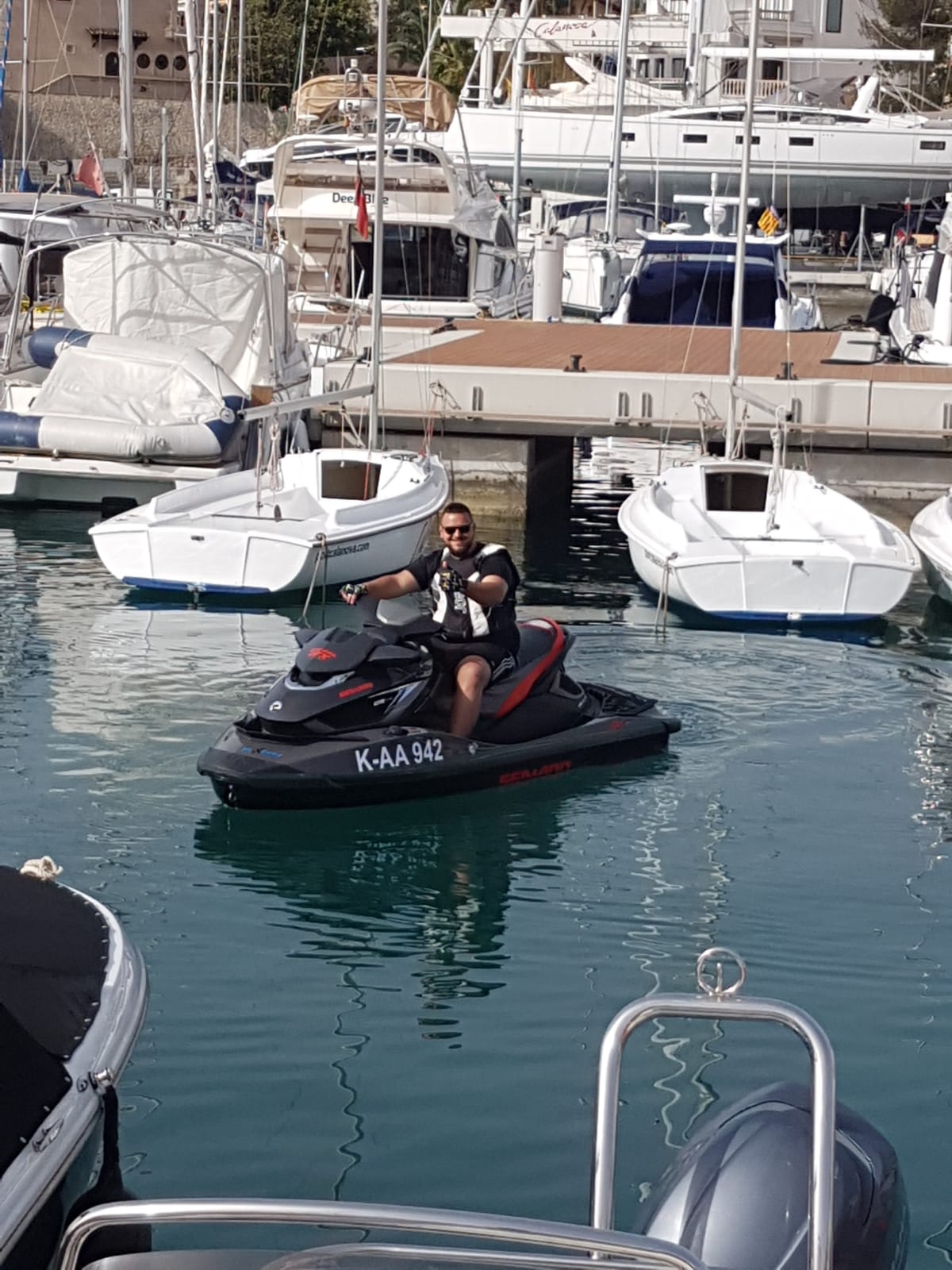 Our Seadoo has an output of 260 hp and is available in black/red. With our jet skis you have the perfect companion for your rented boat and you can also take fast tours across the sea!
